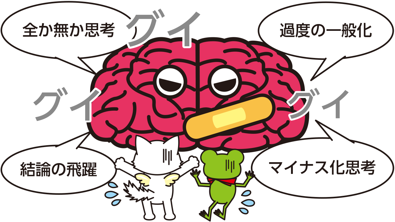 一度の失敗を「自分はいつもこうだ」「絶対うまくいかない」と全体に当てはめる“過度の一般化”。