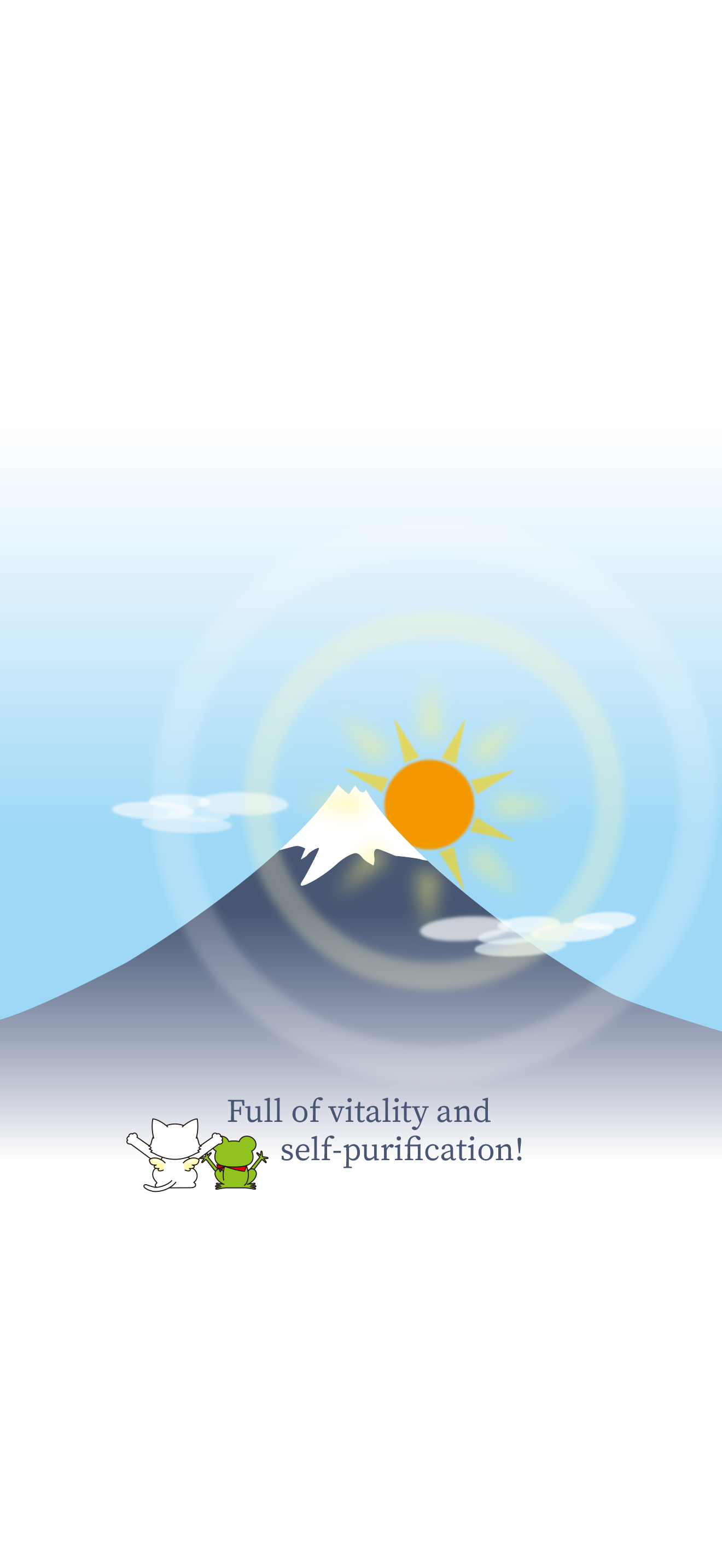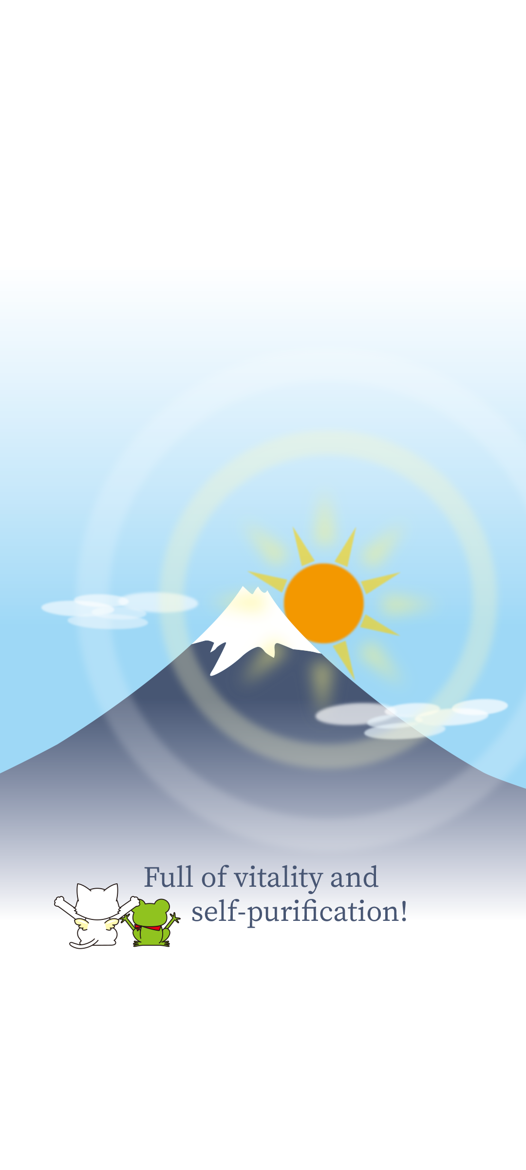 基礎体力と成功運を表す富士山と、生命力と免疫力向上の太陽、リセットや浄化の象徴の白い雲をあしらって、生命力溢れた健康な身体と自助浄化ができるようにと願いながら作成しました。