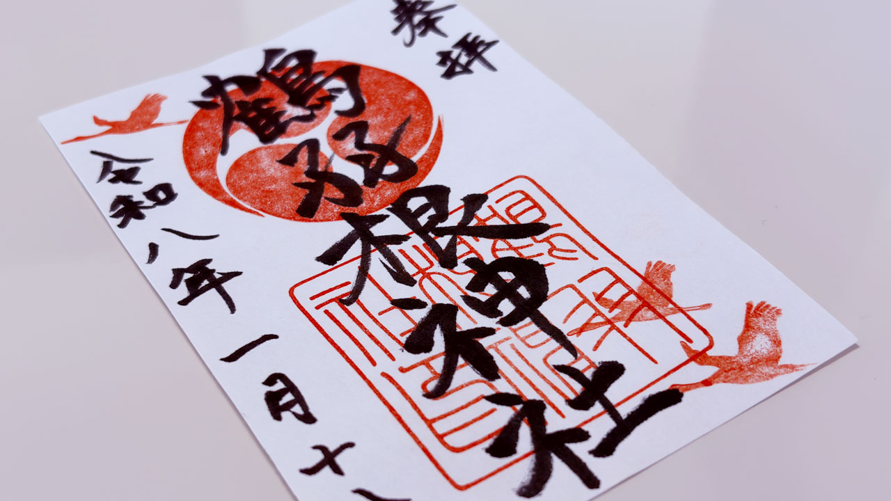 鶴羽根神社の御朱印は鶴の朱印が印象的で、文字も味がありますね。