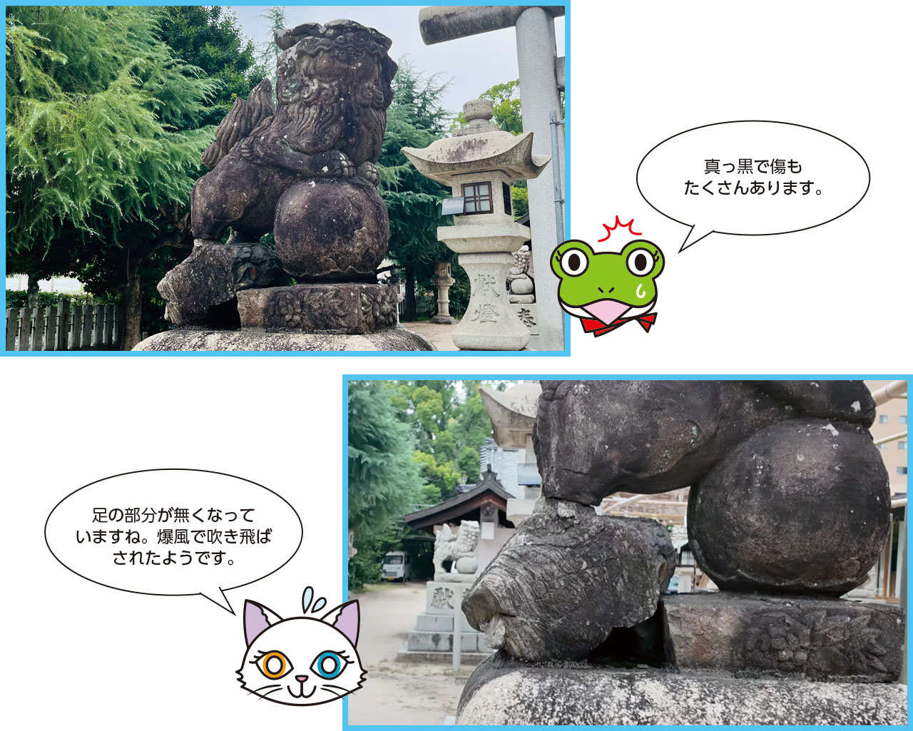 検索してみると、お尻をあげているこの像は「唐獅子」といって、出雲を中心とした中国地方で見かけるタイプだそう。