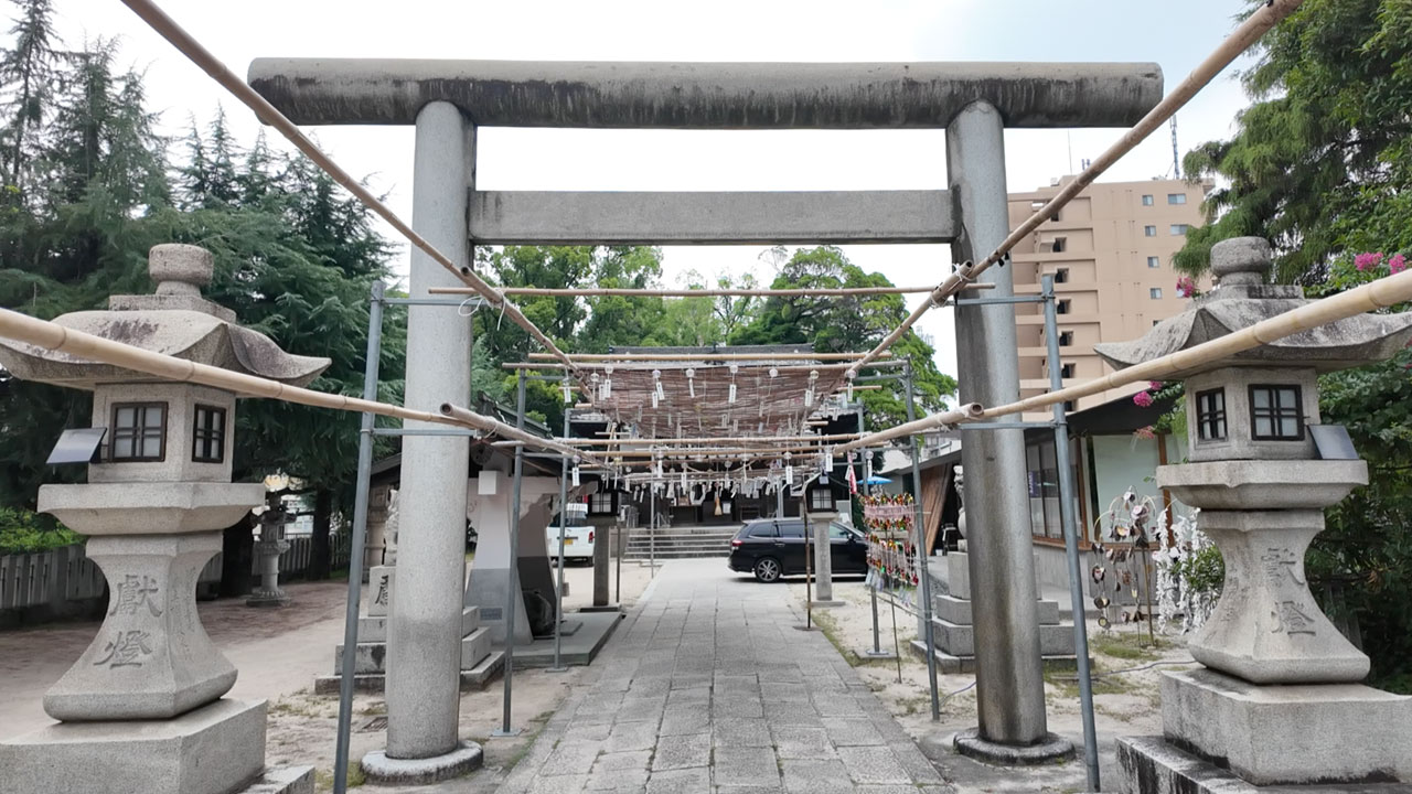 ここには、市寸島比賣命(イチキシマヒメノミコト)・多紀理比賣命(タキリビメノミコト)・多岐都比賣命(タキツヒメノミコト)の宗像三女神(むなかたさんじょしん)が祀られ、相殿には天照皇大神(アマテラスコウタイシン)・須佐之男命(スサノオノミコト)・神倭伊波礼彦命(カムヤマトイワレビコノミコト)を配祀されています。