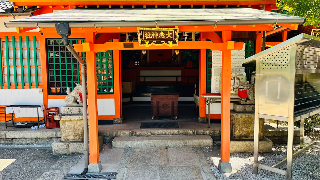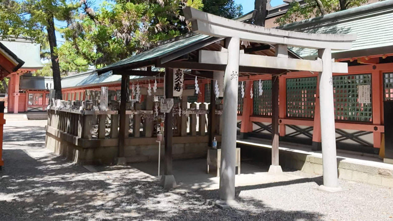 おいとしぼし社は、住吉大社の境内から少し離れた所にある大歳社の敷地内にあります。