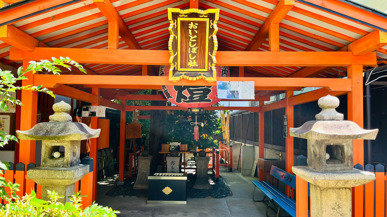小さな橋を渡ってすぐにあるのが大歳社です。その境内に「おいとしぼし社」はあります。