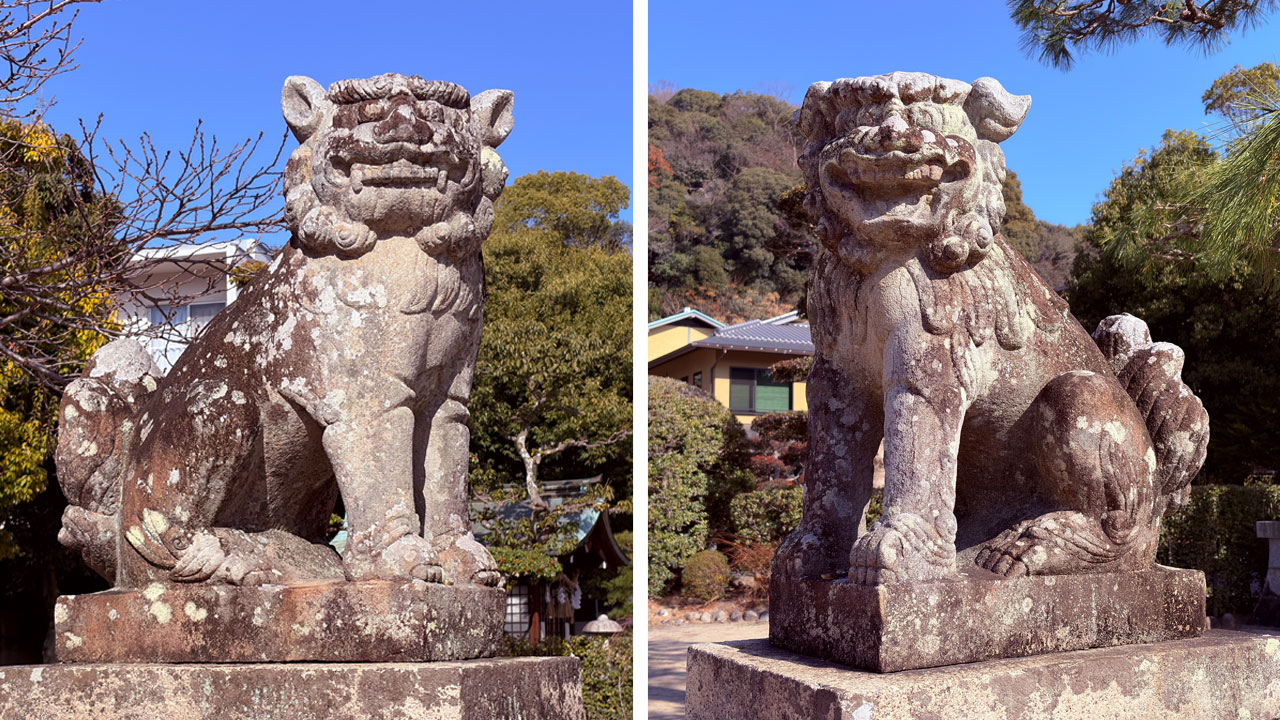 どちらも比較的新しそうに見えます。その手前にあった唐獅子と比べても全然状態が違いますよね。