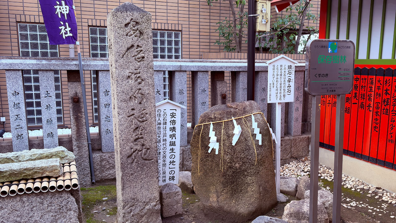 まずは「安倍晴明公誕生地」の碑ですが、江戸時代に神南辺大道心(かんなべだいどうしん)が寄進したものと言われています。