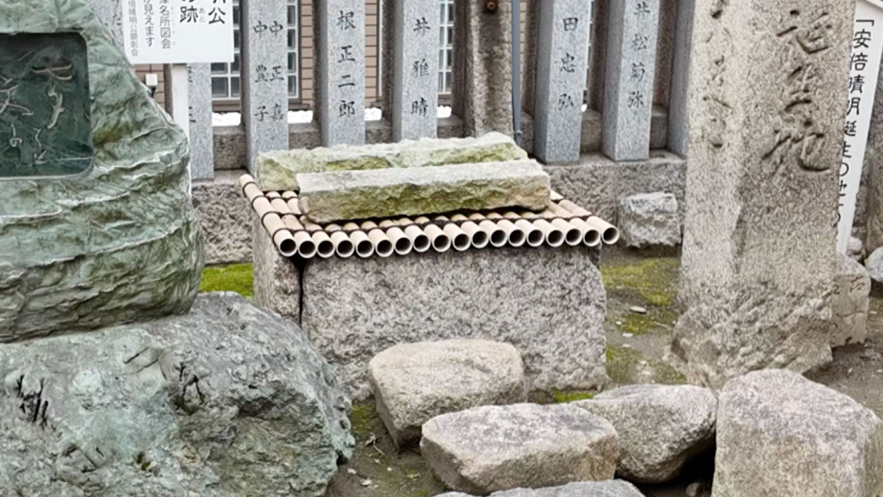 見どころが渋滞していますが(笑)、すぐ横の並びにあるのが「産湯井」の跡。