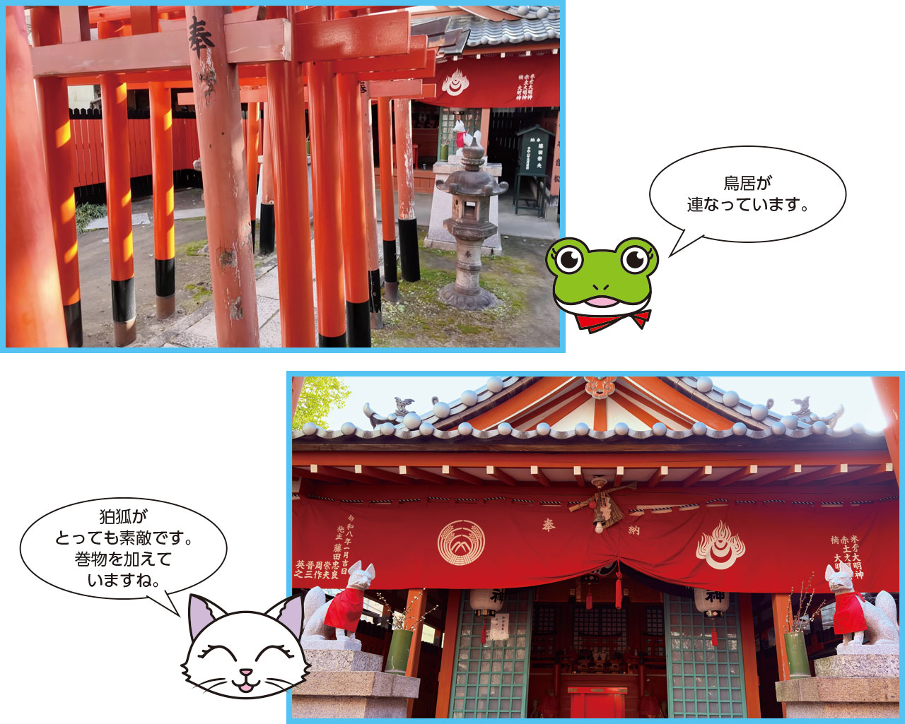 狛犬ではなく「狛狐」がとてもインパクトありますね。